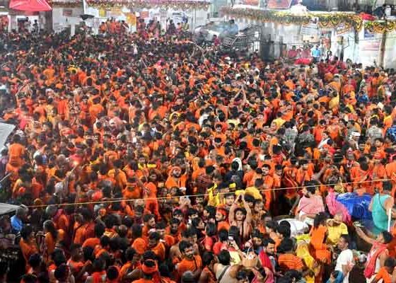 सावन की तीसरी सोमवारी पर बाबा नगरी में आस्था का जनसैलाब, 13 किमी तक लगी श्रद्धालुओं की कतारv