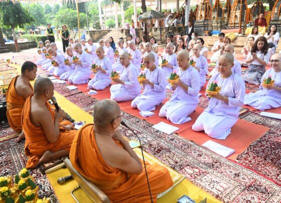 थाइलैंड के श्रद्धालुओं ने बोधिवृक्ष के नीचे भिक्षुओं से ली दीक्षा